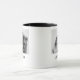 Add your own photo and text to create a unique photo gift. This coffee mug is ready to be customised with your photo and your own names or message in distressed black typewriter style lettering. The simple, modern black and white style looks great with black and white or colour photos. Show off a favourite photo of your pets, a family photo or a vacation memory. The same image and text appear on both sides of the mug.