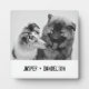 Add your own photo and text to create a unique photo gift. This photo plaque is ready to be customised with your photo and your own names or message in distressed black typewriter style lettering. The simple, modern black and white style looks great with black and white or colour photos. Show off a favourite photo of your pets, a family photo or a vacation memory.