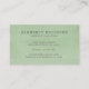 Business card featuring a simple design with a rustic watercolor greenery sprig with large leaves, over a white background. Below are your name and title. The backside has your contact information over a green watercolor wash. This elegant botanical design is great for many professions.