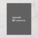 Add an enclosure card with your wedding invitations to provide your guests with important details surrounding your big day. This simple modern design in luxurious medium grey with white text and triple line accent corner has a text template for you to replace with your desired details text. The reverse side of the card has a simple wedding logo using the bride and grooms first names in lower case text with a large ampersand character. This details card is part of a matching collection of wedding invitations and other stationery products and is available in other colours as well. You can also personalise the colour of this card to match your wedding colours by choosing "customise further" at the bottom of the design template and selecting a different background colour. If you do decide to change the colour, be sure to change it on both the front and back of the card.