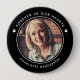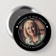 Simple, modern black and white pin-on button for a funeral or memorial service to pay tribute to a loved one who has passed away, featuring a photo with the words "FOREVER IN OUR HEARTS" and your loved one's name. If you need any help customizing this, please message me using the button below and I'll be happy to help.