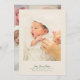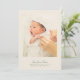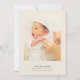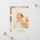 modern simple 5 photo collage script baby Announcement Card. This elegant card includes a photo of 1 photo on the front and 4 on the back with custom text and background.