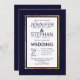 This modern, simple, and elegant faux printed gold stripe outline on navy blue and white wedding invitation is ideal for the classy and formal event. It's classic and sophisticated design is perfect for the trendy and stylish marrying couple. Personalise with your own message on the front as well as a customised monogram initial on the back. All photo print design.
