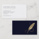 Present your credentials with confidence with our Simple Modern Gold Quill Business Cards. A simple clean front with space for your name, title, and contact information presented in elegant typography on white. The back features a luxurious gold feather on a navy backdrop, which sets a professional tone that offers a tactile promise of quality and discretion.
