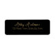 Simple, modern, minimalist and very elegant gold script typography on black background return address labels, Chic, custom made and personalised with your name and address.