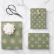 Simple modern gold starburst Christmas wrapping paper sheets. Simple modern gold star designs with complimentary design elements in a stylish soft green and gold holiday colour palette.