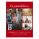 Photo collage script graduation party poster for the new grad. Features 4 photos of the graduate, and the word "Congratulations" is set. Add their name, school college, and class year of graduation by clicking the "Personalise" button.