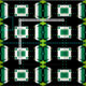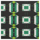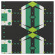 Seamless decorative geometric pattern featuring geometric shapes in green, black and white.