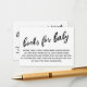 Here is a simple option for your baby shower book request needs. Using a modern handwriting font, I placed graphics at the top of each side with these messages, "books for baby" and "thank you for helping build baby's library". On the front, I wrote a quirky bit of verse, and a friendly, explanatory message for the back. Use my original, or replace these with one of many other options available online as you see fit. Other coordinating pieces are also available. // 100 //