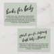 Here is a simple option for your baby shower book request needs. Using a modern handwriting font, I placed graphics at the top of each side with these messages, "books for baby" and "thank you for helping build baby's library". On the front, I wrote a quirky bit of verse, and a friendly, explanatory message for the back. Use my original, or replace these with one of many other options available online as you see fit. Other coordinating pieces are also available. // 100 //