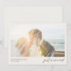 This Minimal & Modern Heart Just Married Wedding Photo Thank You card features a simple yet elegant design. Displaying "just married" in beautiful modern script typography on the front and "thank you" with a delicate heart detail on the back. This wedding photo thank-you card is fully customizable and includes space to write a personal message to each guest.