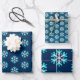 A fun, playful, turquoise and white snowflake graphic pattern in three graphic sizes, on a rich dark blue and teal textured backgrounds, helps you usher in the holiday season of Christmas and Hanukkah. Feel the warmth and joy of the holidays whenever you use this stunning, chic, modern, holiday wrapping paper. Comes in a set of three. Matching and coordinating cards, envelopes, stickers, tote bags, wrapping paper, serving trays, home décor, and more are also available. Turns a great present into something even better!