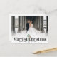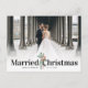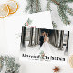 simple modern wedding announcement holiday card with elegant red script and a thank you message to your guests. The couples image can be personalised.