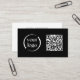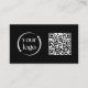 Personalise this modern business card by replacing the sample logo shown in the design template with your logo image. This design also has a template QR code for adding your website URL. Brand your business, club, hobby or other pursuit easily with quality products. Shown here with a sophisticated modern black background, you can change the colour by selecting "edit using design tool" which opens the full editor for changing the background colours and moving text. The back of the card has additional text including space for social media, if desired.