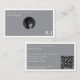 A modern gray and white themed business card design incorporating your photo, details, business name monogram initials and your QR Code. This elegant business card is ideal for all types of professions. A simple and professional way to introduce your business. Personalize your details to create your own unique business card. A perfect business card for anyone.