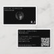 A modern black and white themed business card design incorporating your photo, details, business name monogram initials and your QR Code. This elegant business card is ideal for all types of professions. A simple and professional way to introduce your business. Personalize your details to create your own unique business card. A perfect business card for anyone.