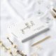 A simple guestbook design with minimalist appeal and modern styling, this design with real gold foil lettering features the word "guestbook" in edgy contemporary handwritten type face on the front. The bride and groom's names and wedding date are included in a simple text template that you can personalise with your info. The back of the book has a square photo template for including a favourite photo of the bride and groom. The template also incudes text on the spine of the guestbook that you can personalise as you like. The white background gives a look is chic sophistication with a congenial flair.