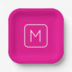 Simple & Modern Monogram Initial | Pink & White Paper Plate