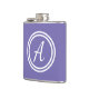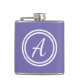 Simple Modern Monogram Initial Purple & White Hip Flask