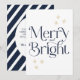 Simple Modern Navy Blue Stripes Merry and Bright Holiday Card