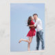 A simple, modern invitation resembling a magazine cover. It has a placeholder photo of lovers kissing, with the blue sky in the background. The lovers are on the lower right of the photo, most of the rest of the photo is just blue sky. The text is white: the Save the Date is in the upper part, in the biggest boldest fonts, the date is center left, with the day in bigger fonts than the rest, and in the lower part, in a somewhat darker zone, (on a darkening gradient) there is the rest of the information: the names, the place and the phrase "Invitation to follow."