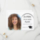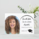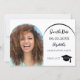 On front: Add your own vertical size photo of the graduate. Photo arch frame. A chic white background, black text. Templates for a name and date. The name and the text: Save the Date are written with a modern hand lettered style script. With a cap, tassel topper.