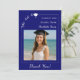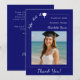 Simple modern photo blue Graduate She did it Thank You Card