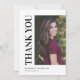 Gratitude, but make it stylish! Our graduation thank you cards come with a minimalist white background that perfectly complements the graduate's photo showcased front and back. Add your personal touch with our sophisticated text template. Let your appreciation truly shine.
