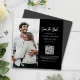 This simple, minimalist Save the Date magnet is perfect for introducing your guests to your big day. The design features a romantic couple and classic white font on a black background, with details you can personalise. It also includes a QR code that makes it easy for your guests to visit your website and learn more about your wedding. The small magnet allows for easy display at home before the wedding, ensuring everyone knows exactly when and where to gather for your special day.