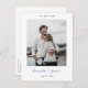 This simple, stylish modern photo wedding thank you thank you postcard template features your names in an elegant shade of royal purple in a lively handwriting script beneath your photo. The date text for your date below that is a grey tone. You might choose to change the font, punctuation or colour used for various text elements of this design on the front and/or back. For example, you might choose to give a different colour to your name text, or change all of the text on the front to the burgundy we used for the names, or change the LOVE AND THANKS text above the photo to THANK YOU or something else. We've chosen black for the LOVE AND THANKS text, but you can change this to any colour you'd like. The background on both sides is set as transparent to let the colour of the paper simply serve as the base tone, but you can change this look by choosing a colour for the background on one or both sides. And we've picked a shade of grey as the default colour for the text on the back. We've put some sample text on the back for you to replace with your own message as you see fit, but please don't feel restricted by this. If you prefer to delete our sample text entirely and keep the back message part of the card totally blank so that you can write a handwritten note on each card instead, you can do that. Or you might want to replace our text with your own message of gratitude and your own closing and then hand sign your names when you receive the cards. You can also change the font and you might change the case from the all upper case look we added. The default paper type, matte, has a soft warmth to it and resists smudging, so it's a great choice for writing your own message. You can edit this and choose semi-gloss instead. Just please be sure in any event to delete our sample/placeholder text on both sides of the card, including the return address and text on the back as well as the text and photo on the front. Use the intuitive design tools, your favourite photo and your inspiration and make this chic wedding thank you postcard uniquely yours. And browse our wedding thank you collection for more simply elegant modern wedding thank you card designs in various formats!