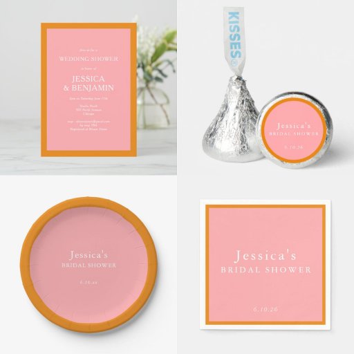 Modern Pink and Orange Colorblock Bridal ShowerDesigned by Opal Ellery