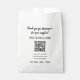 Simple Modern QR Code Favour Bags, please personalise using the online personalisation template before ordering. Please change the URL (website address) for the QR Code in the QR Code URL field, to your business website address, so that the QR Code will be generated automatically for you. Please also change the other fields where desired, these fields are for the text displayed on the favour bags: the header slogan, your business name, a suggestion to people for them to scan the code on the bag to visit your website including your website address in text form for people who may wish to browse to your website manually, and your business phone number. Should you need to change font size, font style or layout, then please click on the "Edit using Design Tool" to "customise further".
