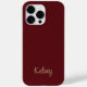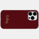 Simple Modern Red and Gold Monogram Name Case-Mate iPhone 14 Pro Max Case. This phone case is in a modern crimson rich red with an elegant gold monogram.