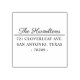 A simple, modern return address stamp you can personalise with your name and address. Family name is in a script font and coordinating address is in a serif font. Designed for you by blackberry boulevard.