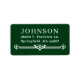 Simple modern white on dark green return address labels featuring a classic serif font above a clean lined scroll for a chic, minimal feel.