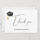 Modern and elegant handwritten script graduation thank you card with an illustration of a graduation cap in black and gold colours, perfect for high school and college graduations. Personalise the card with your own information and message on the back. Illustrated and designed by Patricia Alvarez.
