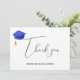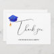 Modern and elegant handwritten script graduation thank you card with an illustration of a graduation cap in royal blue and gold colours, perfect for high school and college graduations. Send your handwritten thank you notes after your grad party with style. The front of the card has the printed typography and the graduate cap illustration and the back of the card as a message for you to personalise. Illustrated and designed by Patricia Alvarez.