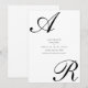 This elegant Save the Date card features a bold and refined script monogram design. A large, flowing initial appears at the top, paired with a matching script letter at the bottom, creating a balanced and sophisticated layout. The typography is clean and modern, set in classic black on a crisp white background. The minimal color palette gives the design a timeless and high-end look.