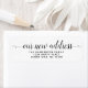 Modern, simple script return address labels for the family who's just moved! Stunning with gorgeous swirls, these black and white new address labels are the perfect stationery add-on for beautiful holiday mailings after a move.