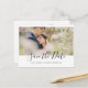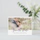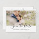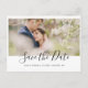This modern script photo save the date card features your special photo overlayed with an elegant script save the date above your names, date and venue in white typography. The reverse has additional save the date details, including your wedding website, with your return address and space for your recipient's address. Designed by Thisisnotme©