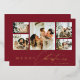 Simple Modern Script Photo Collage Red Christmas Foil Holiday Card