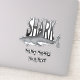 This design features simple modern shark ocean animal, sea marine life nautical typography, shark bite summer beach sun, fun whimsical sunny humour, kids teen adult laptop skin, custom customise minimalist funny, kiss-cut label decal sticker, waterbottle tumbler chic, stylish trendy fish aquatic, personalised stickers