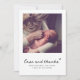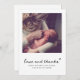 This simply chic square photo baby shower thank you, and birth announcement card in one template features a clean, modern design. A modern script in black for 'love and thanks' on the front and a simple typography for other custom text, including the baby´s details and your custom message on the reverse. This modern minimalist thank-you card is perfect for baby showers, new baby announcements, and so much more! Perfect for a baby girl and baby boy.