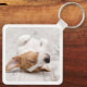 Simple Modern Stylish Dog Name 2 Photo Key Ring