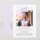 Elegantly minimalist pink and purple graduation announcement card. It's a colour palette that talks about scholarly achievements, intellect, passion and regality. Here, a clean typography meets a chic photo style. Perfect for high school or college grads. Simple, modern, stylish! Celebrate their achievement with our exquisite fully customisable graduation invitation! Customise and buy now!