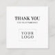 Add this modern thank you business card into your product package. This design features simple "Thank you" and your logo on the front and custom text with social media information on the back side. More stationery and office products are available in my shop BaraBomStudio.