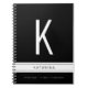 A personalized notebook with a black and white cover featuring a great big huge modern initial letter, name, and notebook or journal title or subject custom printed on the front in chic, modern fonts. Page size: 6.5" x 8.75".