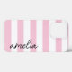 Create your own unique iPhone case! This simple monogrammed case features blush pink and white classic stripes with black personalisation in a delicate, pretty script font.