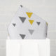 Simple modern elegant geometric abstract triangles in light grey and yellow seamless pattern over custom white background.