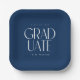 Chic, elegant and simple graduation paper plates feature simple modern type on a blue background with the graduate's name and graduating class.